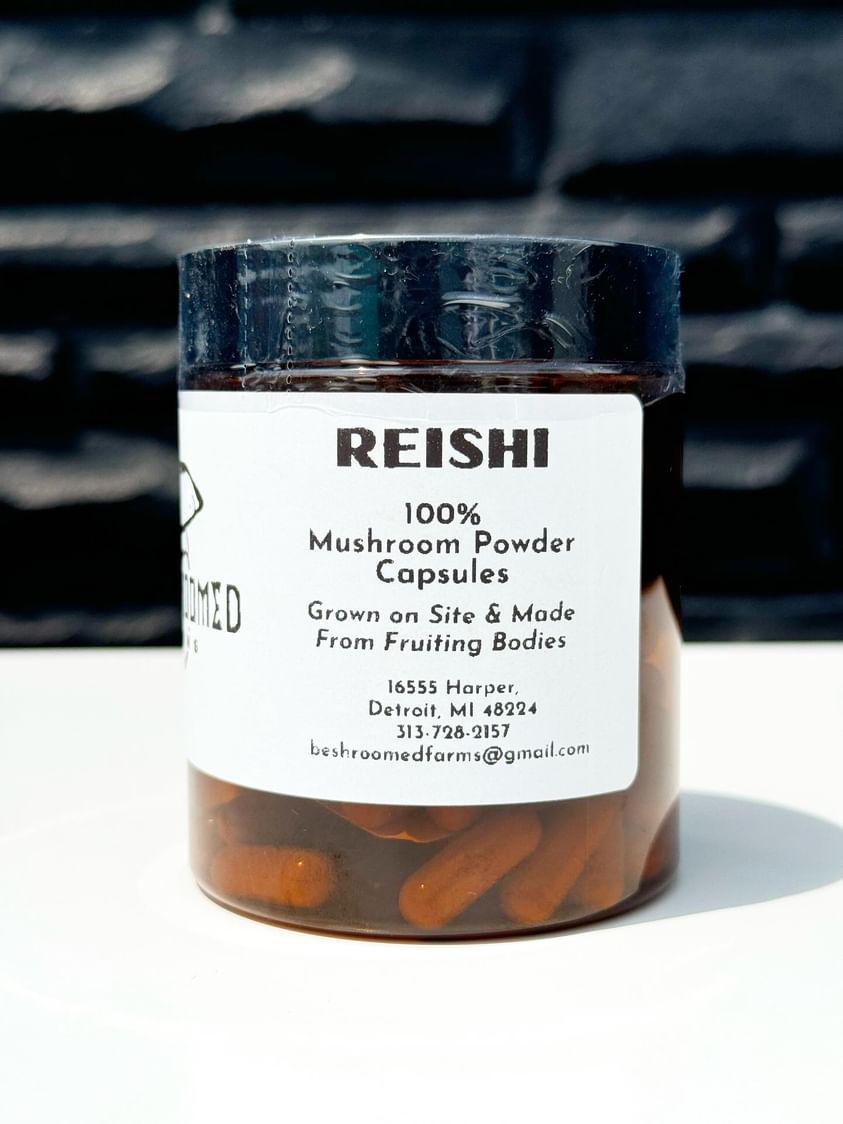 100% mushroom fruit bodies in vegan capsules. 50 capsules per jar
